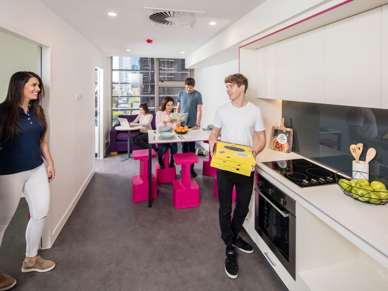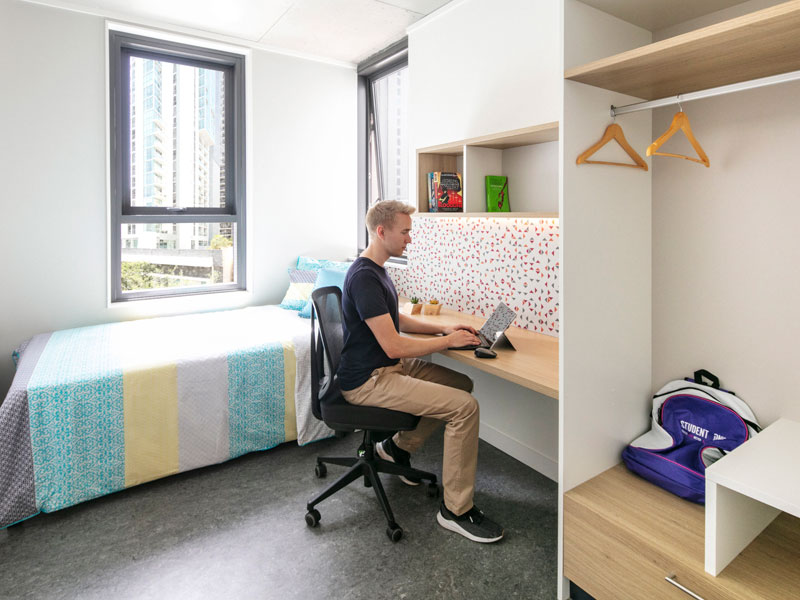Moderne Residenz im Herzen der Stadt. Dein Apartment teilst du mit 3-4 anderen Personen. Ihr wohnt jeweils in Einzelzimmern mit Selbstverpflegung. Küche, Bad und Wohnbereich werden gemeinschaftlich genutzt. Bettwäsche ist vorhanden, Handtücher bitte selbst mitbrigen. Waschen möglich (kostenpflichtig). Die Reisdenz bietet vielfältige Gemeinschaftsbereiche wie ein Musik- und Kinozimmer, eine Studienlounge, einen Fitnessraum, einen Swimmingoool sowie eine Barbecue-Area. Die Schule liegt nur 5 bis 10 Gehminuten entfernt. Bei der Anreise sind 300 AUD als Kaution zu hinterlegen.