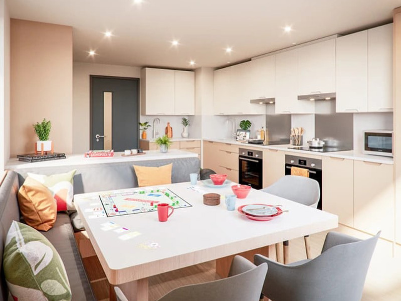 Das Avon Point ist ein modernes, komfortables Studentenwohnheim im Herzen von Bristol. Die zentrale Lage macht es zum idealen Ausgangspunkt, um Stadt und Kultur hautnah zu erleben. Neben stilvollen Lernbereichen bietet das Haus zahlreiche Möglichkeiten, neue Kontakte zu knüpfen und die Freizeit zu genießen: ein Karaoke-Zimmer, ein Gaming-Raum mit Konsolen, ein Café-Bereich sowie ein Fitnesscenter. Zur Ausstattung gehören außerdem eine voll eingerichtete Gemeinschaftsküche, eine Wäscherei (gegen Gebühr), ein Fahrradkeller, eine 24/7-Rezeption sowie Snack-Automaten. Die Unterbringung erfolgt in einem Einzelzimmer mit eigenem Bad und Selbstverpflegung. Bettwäsche und Handtücher werden gestellt. Der Weg zur Schule dauert etwa 20 Minuten zu Fuß.