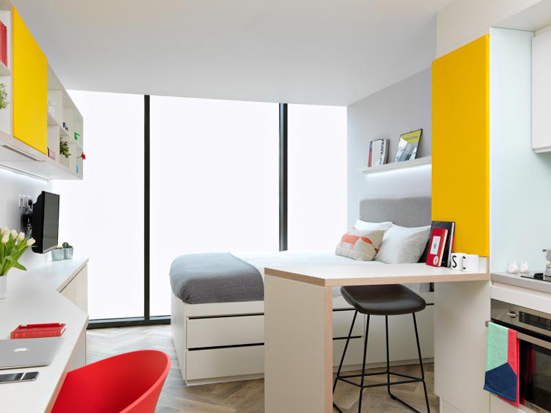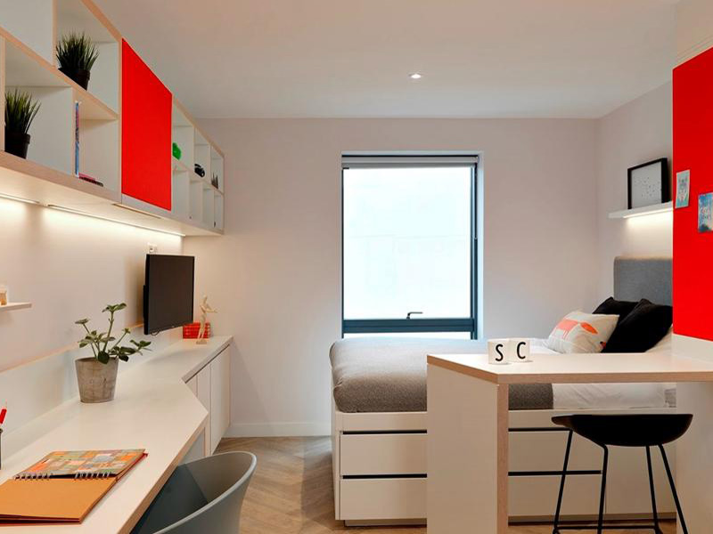 Das Studentenwohnheim Castle Cambridge liegt etwa 15 Minuten mit dem Fahrrad von der Sprachschule entfernt. Die Unterbringung erfolgt im Einzelzimmer mit privatem Bad und Selbstverpflegung. Eine Gemeinschaftsküche steht zur Verfügung, WLAN ist inklusive. Bettwäsche wird bereitgestellt, Handtücher sind selbst mitzubringen. Zur Ausstattung gehören außerdem ein Fitnessraum und ein Waschsalon. Die Unterkunft ist ab 18 Jahren buchbar und kann gegen Aufpreis auch als Studio mit eigener Küche reserviert werden.