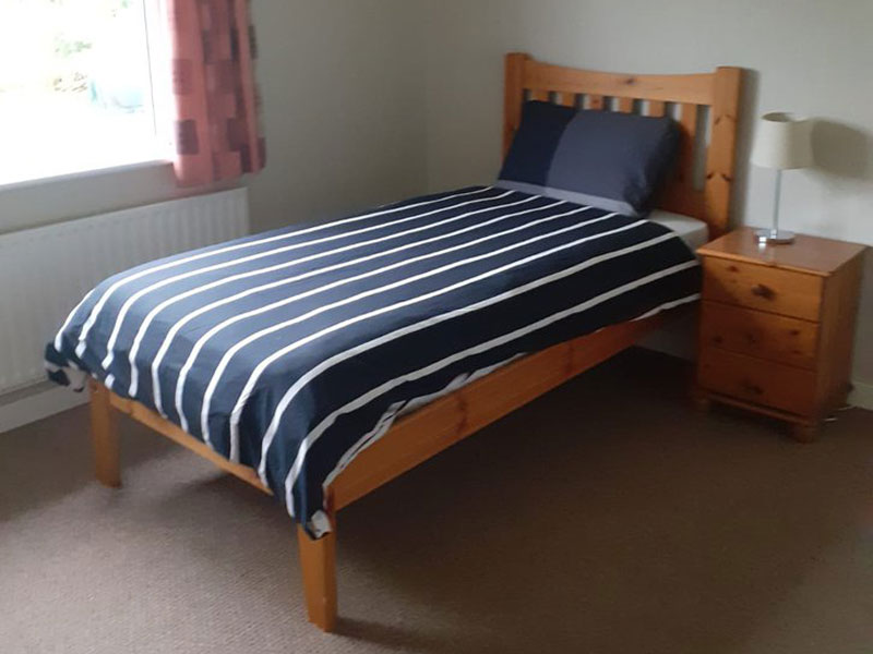 Unterbringung bei irischen Gastfamilien im Einzelzimmer. Verpflegung umfasst Halbpension an Wochentagen und Vollpension am Wochenende. Bettwäsche und Handtücher sind vorhanden. Die Fahrt mit dem Bus zur Sprachschule dauert etwa 20 bis 35 Minuten.