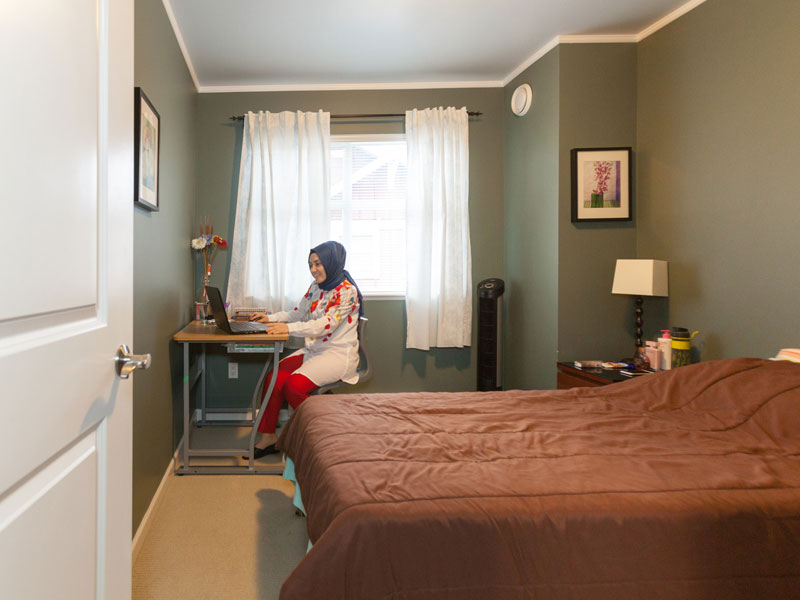 Unterkunft bei kanadischen Gastfamilien im Einzelzimmer mit Halbpension. Bettwäsche ist vorhanden, Handtücher bitte selbst mitbringen. WLAN steht kostenlos zur Verfügung. Die Sprachschule erreichst du in etwa 40 bis 60 Minuten mit den öffentlichen Verkehrsmitteln.