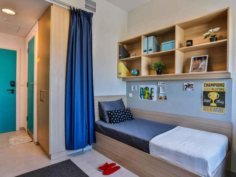 Moderne Residenzen, etwa 35 bis 40 Busminuten von der Sprachschule entfernt. Du wohnst in einem Einzelzimmer mit eigenem Bad und Selbstverpflegung. Gemeinschaftsküchen stehen zur Verfügung. WLAN ist inklusive. Bettwäsche und Handtücher werden gestellt, eine Waschmöglichkeit ist vorhanden. Darüber hinaus bieten die Residenzen verschiedene Gemeinschaftsbereiche wie Fitness-, Spiel- und Filmräume, Studierzimmer, Swimmingpool und Lounges.