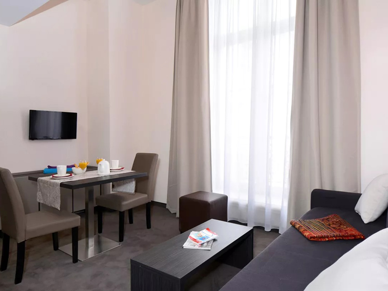 Das Studentenhaus Appart Hotel Odalys bietet Einzelzimmer mit eigenem Bad und Küchenzeile. Es liegt im Stadtzentrum von Montpellier, nur etwa 300 Meter vom Place de la Comédie entfernt. Zur Ausstattung gehören Klimaanlage, Lounge, kostenfreier Internetzugang und WLAN sowie ein gebührenpflichtiger Waschsalon. Bettwäsche und Handtücher sind vorhanden. Die Sprachschule ist in rund 15 Gehminuten erreichbar.