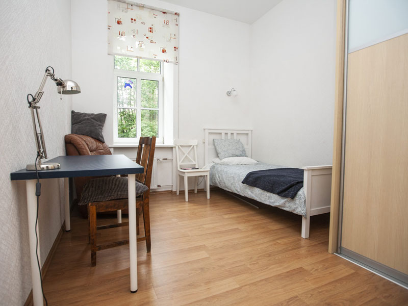 Die Unterbringung erfolgt in einem geteilten Apartment mit zwei bis vier Schlafzimmern. Untergebracht bist du in einem Einzelzimmer mit Selbstverpflegung. Küche, Wohnraum und Bad werden gemeinsam genutzt. Handtücher und Bettwäsche sind vorhanden, WLAN steht kostenlos zur Verfügung. Eine Waschmöglichkeit ist gegeben. Die Apartments liegen im Stadtzentrum von Riga, rund 30 bis 40 Minuten von der Sprachschule entfernt (zu Fuß oder per Fahrt). Buchbar ab 18 Jahren. Bei Einzug ist eine Kaution von 200 € zu hinterlegen.