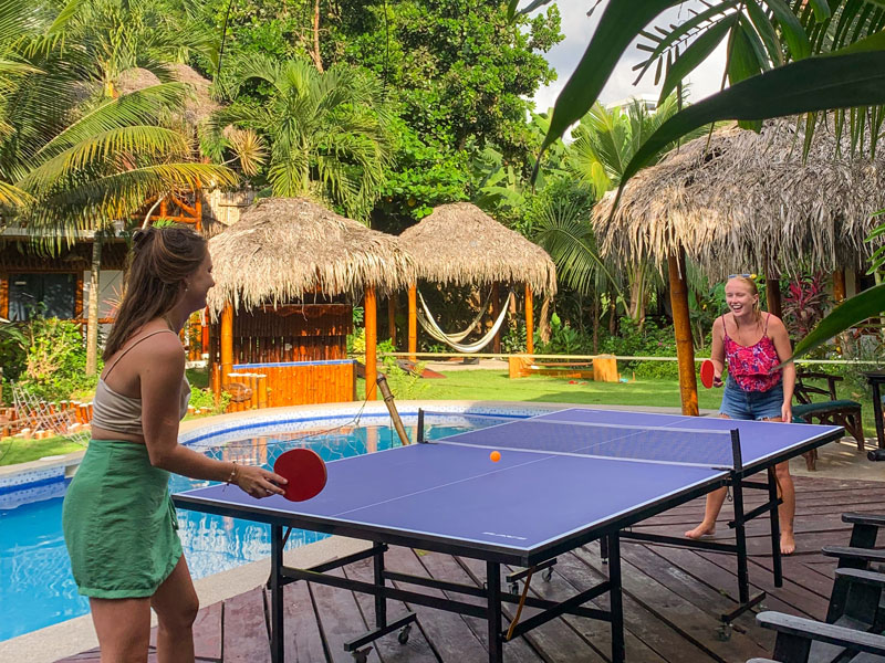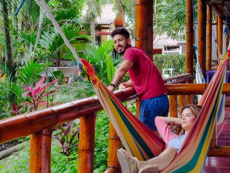 An-/Abreise: Sonntag bis SamstagDu wohnst in einem Hostel im Privatbungalow, einer sogenannten Cabaña, mit eigener Kochnische und Bad. Im rustikalen Stil Montañitas gestaltet, wurden die Bungalows umweltbewusst aus Bambus gebaut und mit einem traditionellen Palmdach gedeckt. Die Schule erreichst du in nur 10 Minuten zu Fuß, der Strand ist 5 Minuten entfernt. Direkt vor deiner Unterkunft laden ein Swimmingpool und ein Whirlpool zum Entspannen ein. Bettwäsche und Handtücher werden gestellt und die Räume werden wöchentlich gereinigt. Gratis WLAN vorhanden.