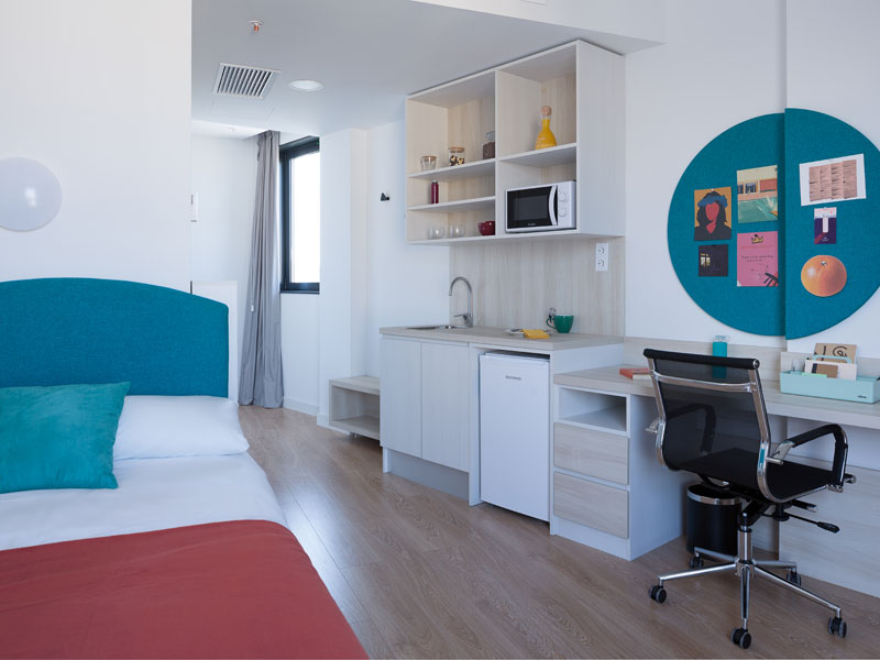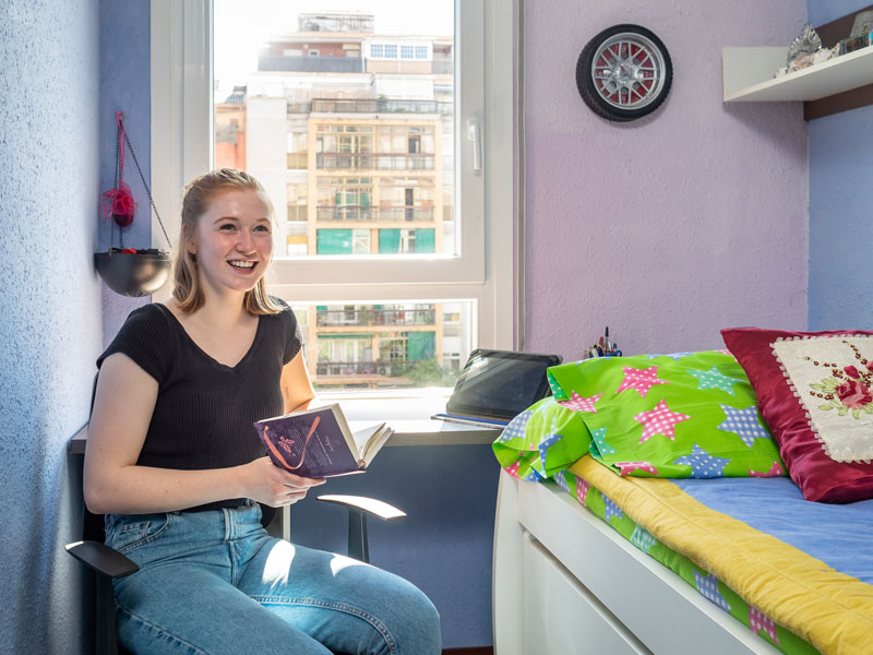In der modernen Residenz im Viertel Sants-Montjüic wohnst du im Einzelzimmer mit eigenem Bad und Küchenzeile. Halbpension ist inklusive. WLAN steht dir zur Verfügung, Handtücher und Bettwäsche werden gestellt. Zur Anlage gehören verschiedene Gemeinschaftsbereiche wie ein Kinosaal, ein Fitnessraum und Studierzimmer. Die Sprachschule erreichst du in etwa 20 Minuten mit den öffentlichen Verkehrsmitteln. Das Mindestalter für diese Unterkunft beträgt 18 Jahre.