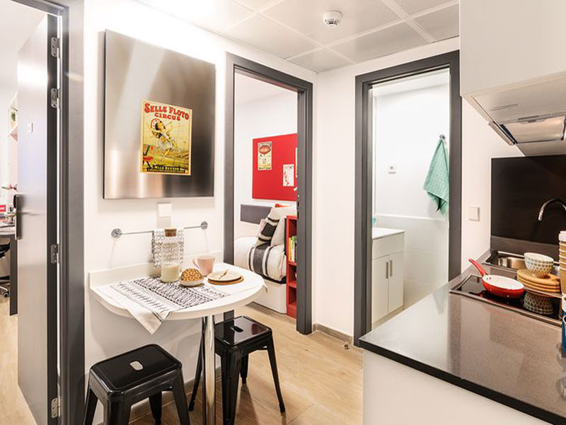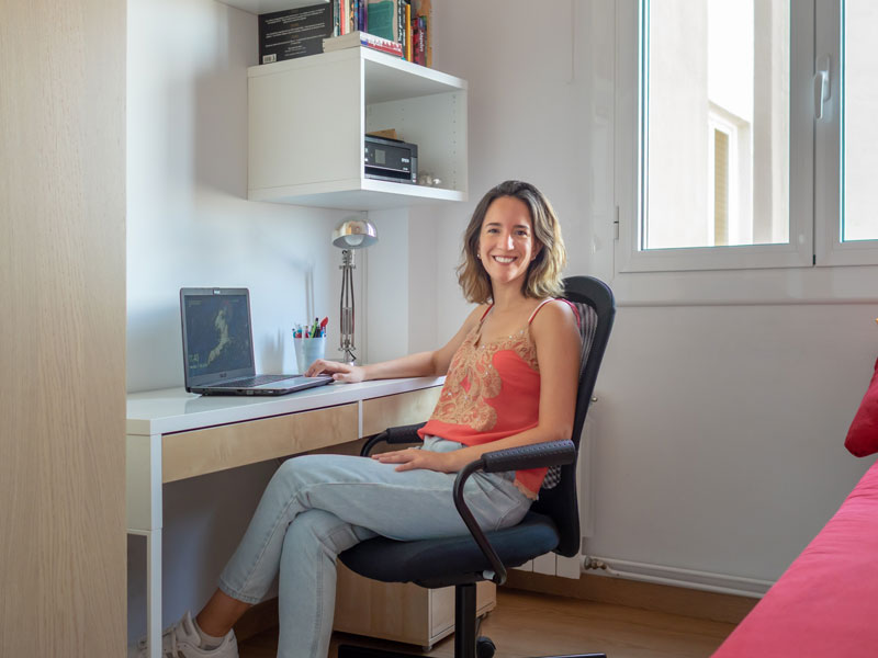 Du wohnst in einer modernen Studentenresidenz im Viertel Chamberí. Untergebracht bist du im Einzelzimmer mit Gemeinschaftsbad und gemeinsamer Küche. Die Verpflegung organisierst du selbst. Handtücher und Bettwäsche werden gestellt, eine Waschmöglichkeit ist gegen Gebühr vorhanden. WLAN steht dir kostenlos zur Verfügung. Im Gebäude findest du Gemeinschaftsbereiche und Studierzimmer. Die Sprachschule erreichst du in etwa 15 Minuten mit den öffentlichen Verkehrsmitteln oder in rund 30 Minuten zu Fuß. Die Unterkunft ist ab 18 Jahren buchbar.