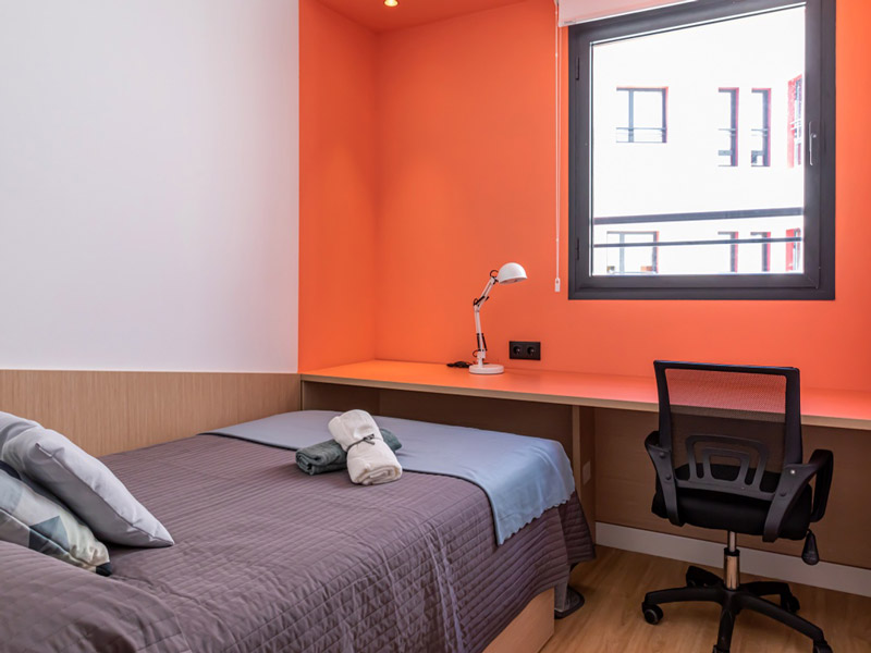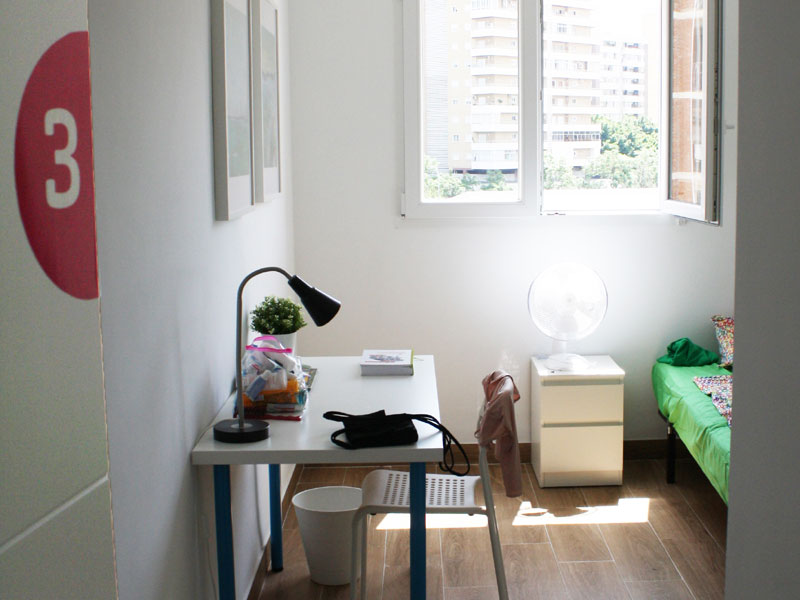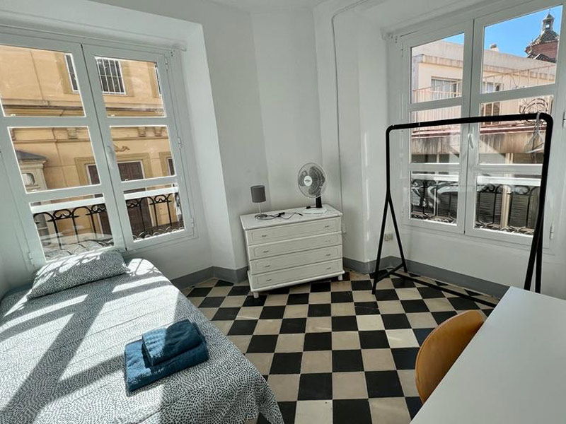 Mini-Residenz im Zentrum von Málaga, zur Schule sind es nur etwa 15 Minuten Fußweg. Unterbringung im Einzelzimmer in einer Wohneinheit mit maximal 5 weiteren Sprachschülern. Die Verpflegung erfolgt in Eigenregie. Badezimmer, komplett ausgestattete Küche sowie Wohn- und Essbereich werden gemeinschaftlich genutzt. Bettwäsche und Handtücher sind vorhanden, einmal pro Woche findet eine Reinigung statt. WLAN ist im Preis inbegriffen.
