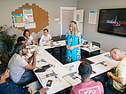Im Gruppenunterricht werden zentrale Sprachfertigkeiten wie mündlicher und schriftlicher Ausdruck, Grammatik, Aussprache sowie Lese- und Hörverständnis geübt.