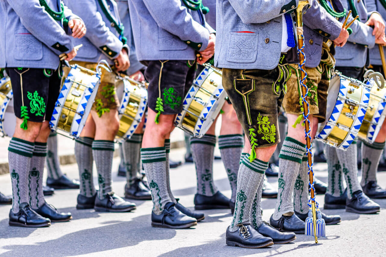 Trachtenkapelle mit Trommeln.