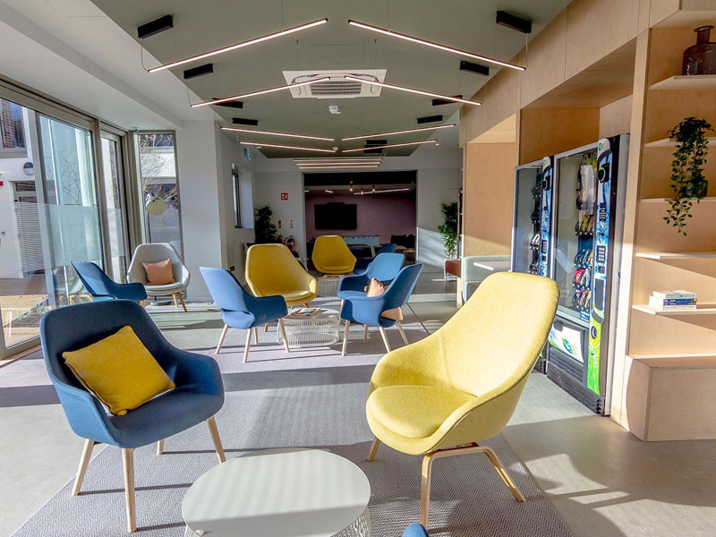 - Gemeinschaftsbereiche mit Schulcafé und Dachterrassen
