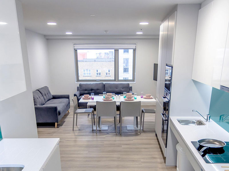 Die zentrale Residenz liegt nur etwa 15 Gehminuten von der Sprachschule entfernt. Du wohnst dort in einer Apartment-Einheit mit bis zu 8 Bewohnern. Dein Zimmer ist ein Einzelzimmer mit eigenem Bad. Für deine Verpflegung bist du selbst zuständig; Küche und Wohnbereich nutzt du gemeinsam mit den anderen. Handtücher und Bettwäsche werden bereitgestellt, WLAN steht dir kostenlos zur Verfügung.