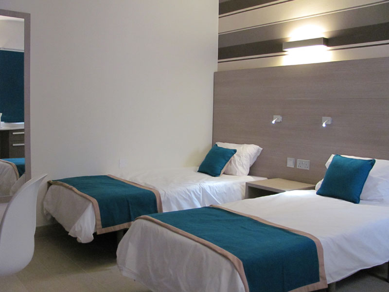 Das moderne Studentenwohnheim im Zentrum von Sliema liegt nur 7 Gehminuten von der Sprachschule entfernt. Du wohnst im Einzel- oder Doppelzimmer mit eigenem Bad, zur Selbstverpflegung steht eine Gemeinschaftsküche bereit. WLAN und Klimaanlage sind inklusive. Zur Ausstattung gehören ein Waschraum, eine 24/7-Rezeption, ein großer Lounge-Bereich sowie eine Dachterrasse mit Pool. Bettwäsche und Handtücher werden gestellt, Strandtücher bringst du bitte selbst mit. Die Reinigung erfolgt dreimal pro Woche. Alleinreisende buchen ein Einzelzimmer. Das Mindestalter beträgt 18 Jahre.