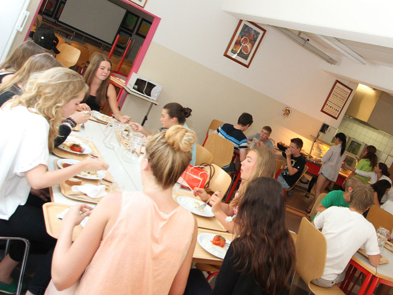 - eigene Cafeteria, in der zwischen Unterricht und Freizeitaktivitäten das Mittagessen angeboten wird