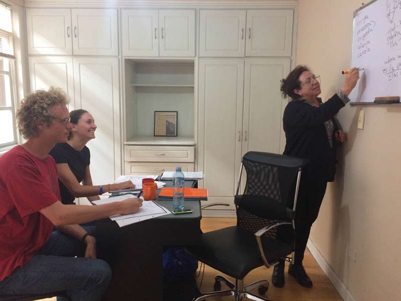Duounterricht in Allgemeinsprache Spanisch für gemeinsam reisende Teilnehmer mit gleichem Sprachniveau. Die Inhalte werden individuell abgestimmt, mit möglichen Schwerpunkten auf mündlichem und schriftlichem Ausdruck, Grammatik, Vokabular, Textarbeit oder Themen zur ekuadorianischen Kultur, Geschichte & Zeitgeschehen.