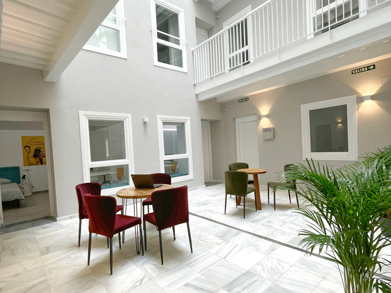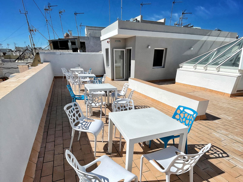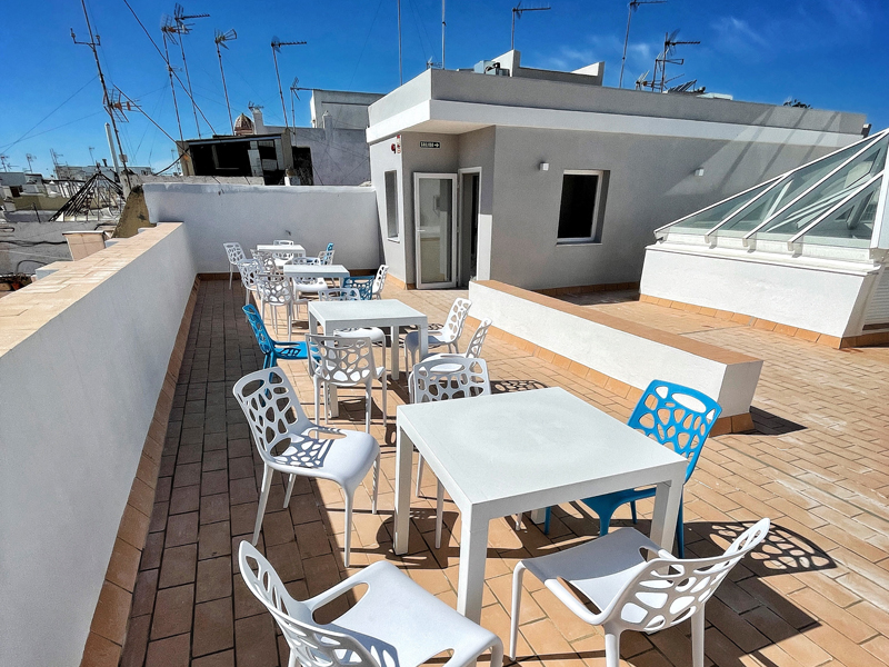 Die Unterkunft befindet sich in der Residenz “La Oca”, einem renovierten Gebäude aus dem 19. Jahrhundert, direkt im Zentrum von Cádiz. Du wohnst im Einzelzimmer oder, zusammen mit deinem Reisepartner, im Doppelzimmer, mit eigenem Bad. Die Verpflegung erfolgt selbstständig, pro Etage gibt es eine gemeinschaftlich genutzte Küche. Die Residenz bietet eine große Terrasse, einen Patio sowie weitere Gemeinschaftsbereiche. Waschmöglichkeit, Handtücher und Bettwäsche vorhanden. WLAN kann genutzt werden. Alleinreisende müssen ein Einzelzimmer buchen. Die Schule liegt etwa 25 Gehminuten entfernt.