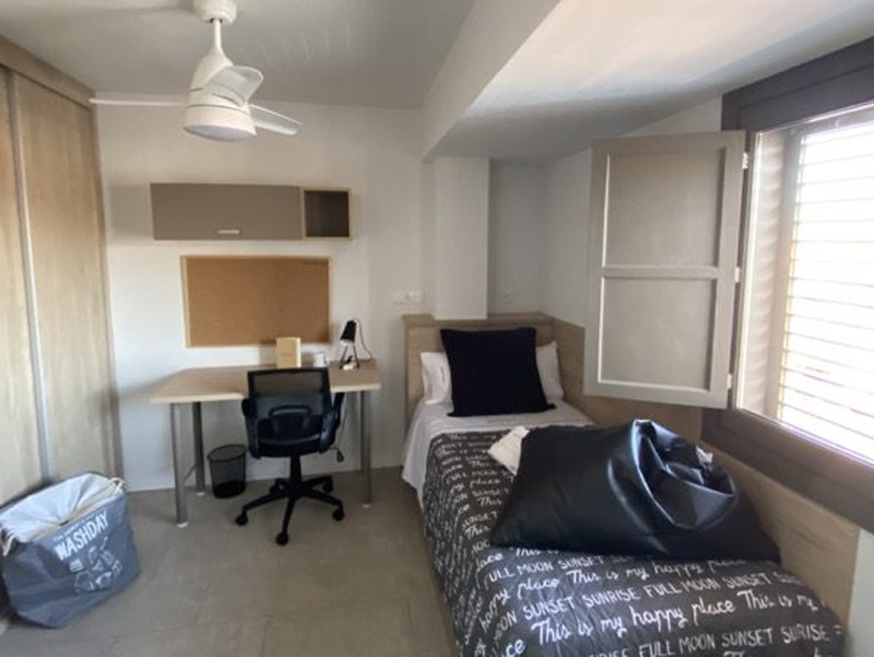 Du wohnst zusammen mit anderen Sprachschülern, in der Hochsaison teilweise auch mit spanischen Studierenden, in einer Studenten-WG mit drei bis vier Schlafzimmern und ein bis zwei Bädern. Zur Auswahl stehen Einzelzimmer sowie Doppelzimmer, die du entweder mit deinem Reisepartner oder einer weiteren Person teilst. Die Unterbringung erfolgt mit Selbstverpflegung, Küche und Bad nutzt du gemeinsam mit den Mitbewohnern. Bettwäsche wird bereitgestellt, Handtücher bringst du bitte selbst mit. Die Studenten-WG verfügt über WLAN, einen Wohnbereich mit TV und eine Waschmaschine. Alleinreisende haben ebenfalls die Möglichkeit, ein Doppelzimmer zu buchen. Die Fahrtzeit zur Schule beträgt etwa 20 Minuten mit öffentlichen Verkehrsmitteln.